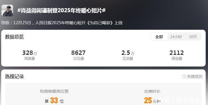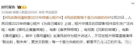 因此,肖战得闲谨制登2025年终暖心短片音书,冲上热搜!