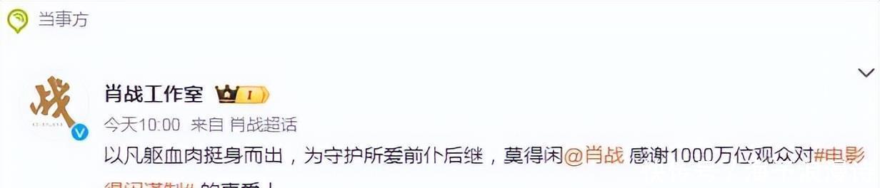 肖战责任室在酬酢平台发文:“以凡躯血肉挺身而出,为看管所爱前赴后继,没有闲肖战感谢1000万位不雅众对电影得闲谨制的怜爱!”